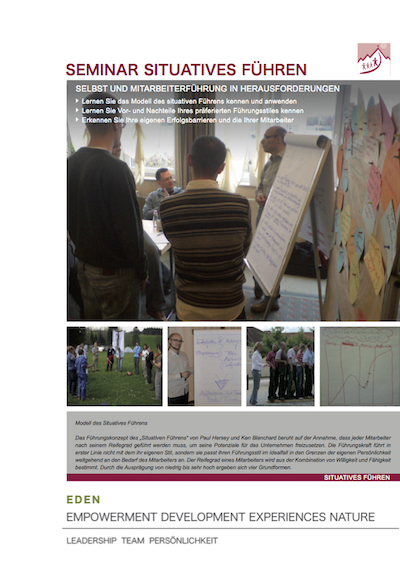 „Das Führungskonzept des „Situativen Führens“ von Paul Hersey und Ken Blanchard beruht auf der Annahme, dass jeder Mitarbeiter nach seinem Reifegrad geführt werden muss, um seine Potenziale für das Unternehmen freizusetzen. Die Führungskraft führt in erster Linie nicht mit dem ihr eigenen Stil, sondern sie passt ihren Führungsstil im Idealfall in den Grenzen der eigenen Persönlichkeit weitgehend an den Bedarf des Mitarbeiters an. Der Reifegrad eines Mitarbeiters wird aus der Kombination von Willigkeit und Fähigkeit bestimmt. Durch die Ausprägung von niedrig bis sehr hoch ergeben sich vier Grundformen”